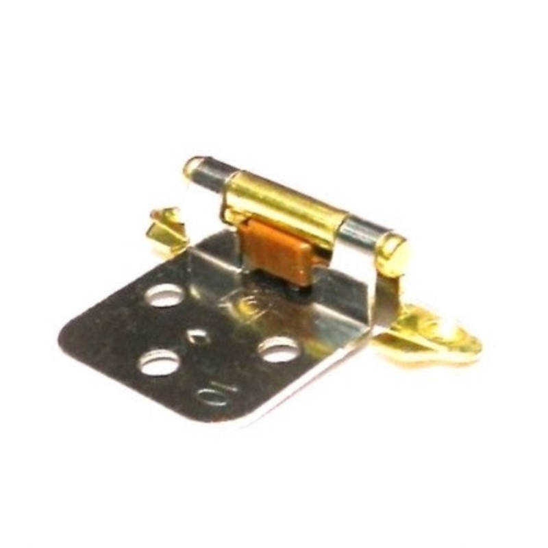 Pair of Belwith New Quality Chrome and Polished Brass Self-Closing SurFace Mount Cabinet Hinges P50010F-PBCHPolished Brass and ChromeFace MountVariable OverlaySelf-ClosingFrame Hole Centers: 2 1/8"