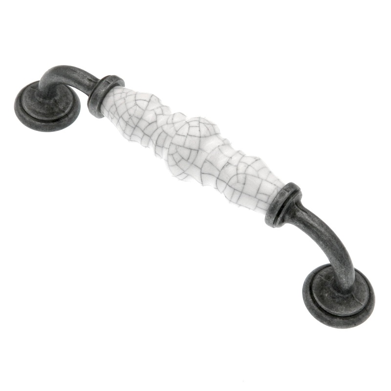 10 Pack of Dark Pewter White Grey Crackle 5" (128mm) Screw Spacing Arch Cabinet Handle Pulls P3658-DPWGC from Belwith Products Hickory Hardware's Callis Country CollectionCallis Country Collection Dark Pewter and White Grey CrackleArch Cabinet Handle PullZ