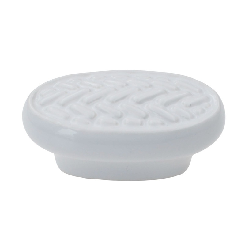 Pack of 10 Basket Weave White 2" Porcelain Oval Cabinet Knob Pulls PA0315-W from Belwith Keeler Hickory Hardware's English Cozy CollectionAdd style to your cabinets and furnitureEnglish Cozy, White finishOval Basket Weave DesignDurable Porcelain constructi