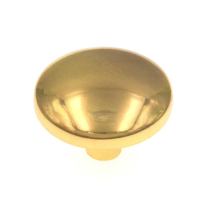 Contemporary Cabinet Polished Brass Knob from Warwick in a style to match a variety of other cabinet hardware and add beauty to your room. Screws included.Warwick Designer Hardware collectionPolished Brass KnobContemporary Dome StyleDiameter: 1 1/4"Project