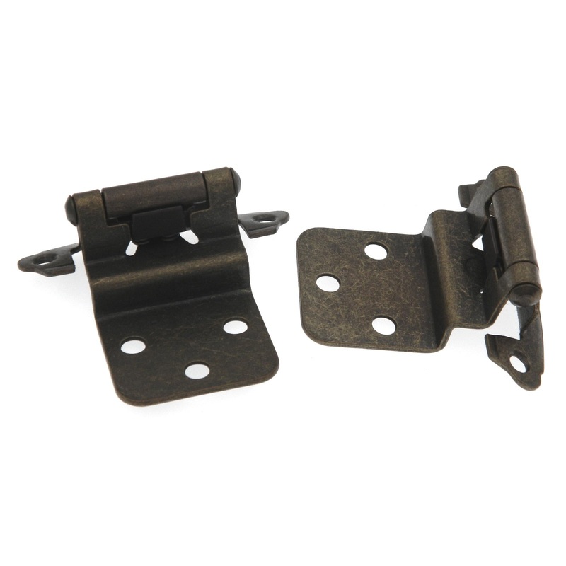 10 Pairs ofWindover AntiqueSelf-ClosingSurFace Mount 3/8" Offset CabinetHinges P243-WOA from Hickory HardwareWindover Antique FinishFace Mount3/8" InsetSelf-ClosingFrame Hole Centers: 2 1/8"
