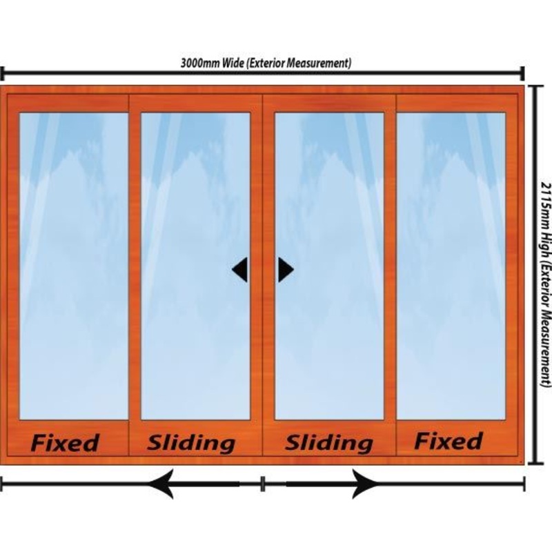3000mm Wide Full Pane Slider 4 Door