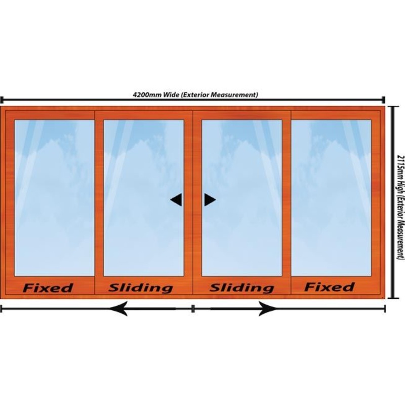 Full Pane Slider - Viewed from the Outside the Centre Leaves Slide Outwards and the Outer Leaves are Fixed4200mm Wide X 2115mm HighExcludes Locks, Handles & GlazingCode: S4FP42Wooden Sliding Doors, Wooden Sliding Doors >> Full Pane Sliding Doors