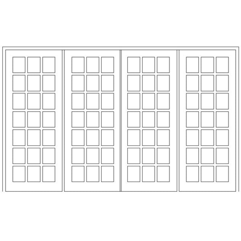 56 X 80 Entrance Unit Frame with fixed Strongwood Security door leaves on the sides.Centre Strongwood Security doors are supplied loose.Strongwood Security Doors have solid lengths of steel totally encased inside the timber cottage pane barsExcludes, glass