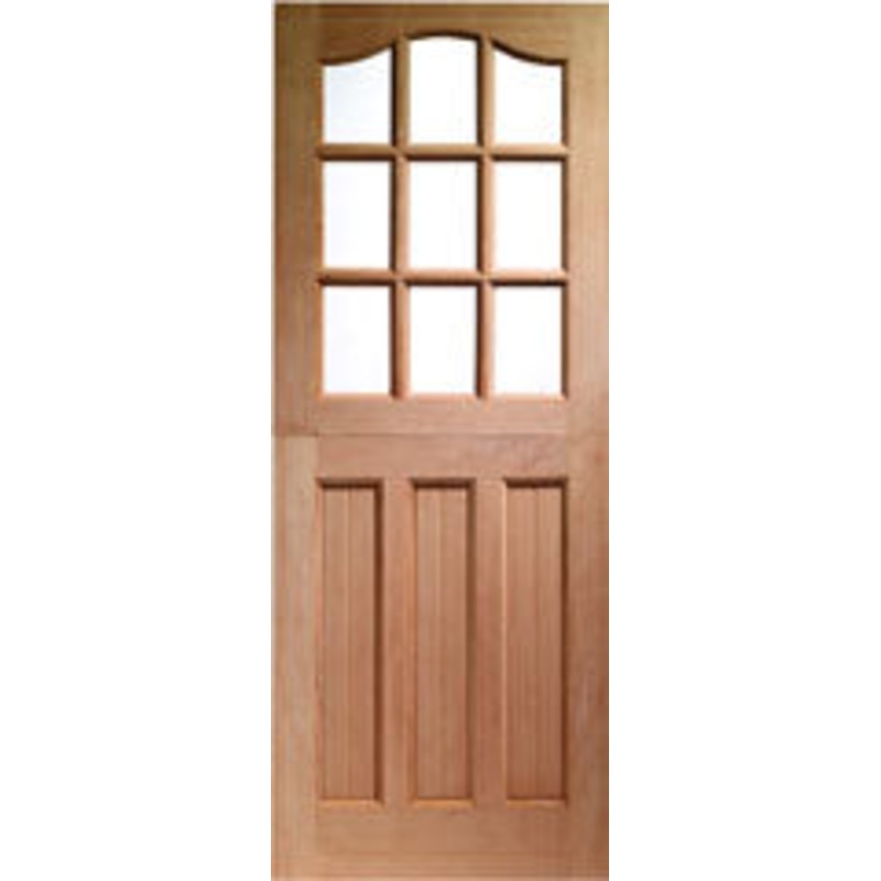 The 9 Light Arched Top Raised & Fielded Panel Bottom Stable Door mixes traditional raised and fielded panels with a cottage pane design.FeaturesMade from solid meranti9 glass panels at the top3 Panel bottomDoor is supplied without glassDoor is supplied wit