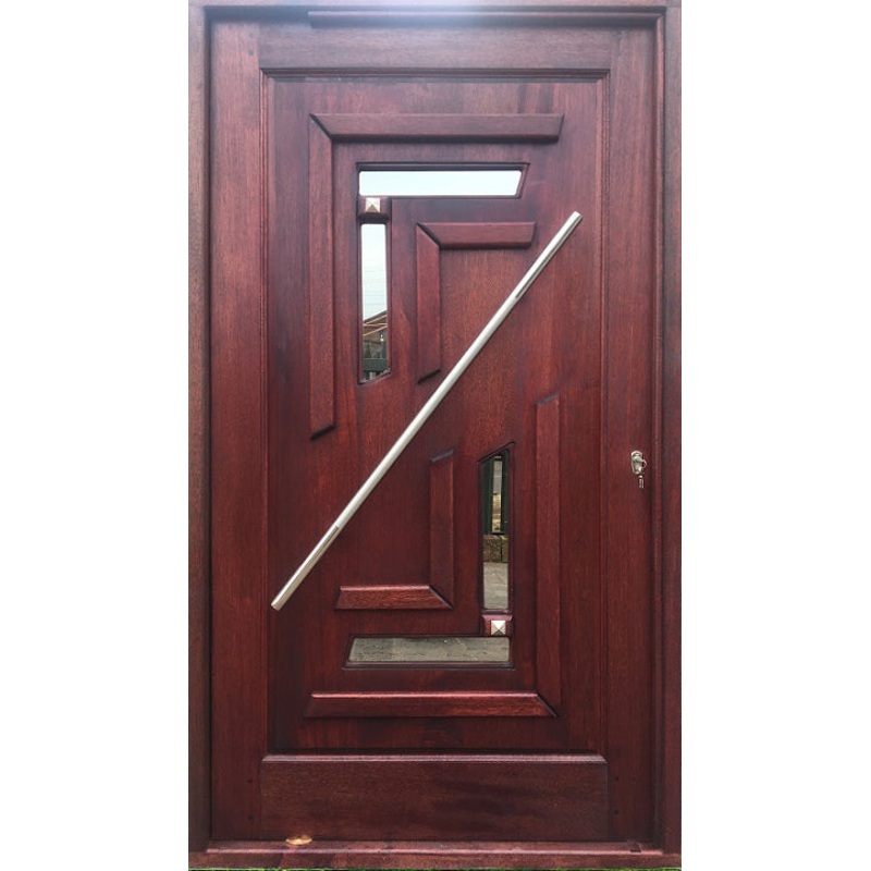 A12 Glass & Panel with Diagonal Handle Pre Hung Pivot Door 1200W X 2120 in Frame complete with factory fitted lock, pivot hinge & handlesKey Features:Pre-hung Pivot Door: Simplify installation with our pre-hung design, ensuring a seamless fit into your space.Premium Saligna Timber: Experience the beauty and durability of Saligna Timber, providing a natural and timeless aesthetic.Raised Timber Decorative Inlay: The door features an elegant decorative inlay on the outside, adding a touch of sophistication to your entry.6.38mm Safety Glass: Enhance security and aesthetics with the inclusion of 6.38mm safety glass, providing both transparency and safety.Inward Opening: The door opens inwards, optimizing space and allowing for a graceful entry experience.Left & Right Hand Opening Options: Choose the opening direction that best suits your preferences and space configuration.Pre-Oiled at Factory: Enjoy the convenience of a pre-oiled finish, adding an extra layer of protection and highlighting the natural beauty of the timber.Custom Sizes Available: Need a specific size? Contact us at [email protected] for personalized sizing options and pricing.6 Month Manufacturers Guarantee: Rest easy with our 6-month guarantee, reflecting our commitment to product quality and customer satisfaction.