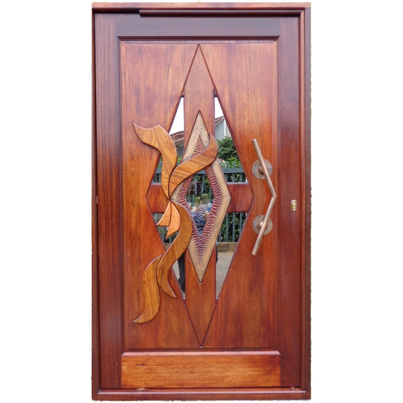 A6 Pre Hung Pivot Door with Diamond Design, Metal Inlay, Glass & Raised Pattern 1200W X 2120 in Frame complete with factory fitted lock, pivot hinge & handlesKey Features:Pre-hung Pivot Door: Simplify installation with our pre-hung design, ensuring a seamless fit into your space.Premium Saligna Timber: Experience the beauty and durability of Saligna Timber, providing a natural and timeless aesthetic.Decorative Inlay: The door features an elegant decorative inlay on the outside, adding a touch of sophistication to your entry.6.38mm Safety Glass: Enhance security and aesthetics with the inclusion of 6.38mm safety glass, providing both transparency and safety.Inward Opening: The door opens inwards, optimizing space and allowing for a graceful entry experience.Left & Right Hand Opening Options: Choose the opening direction that best suits your preferences and space configuration.Pre-Oiled at Factory: Enjoy the convenience of a pre-oiled finish, adding an extra layer of protection and highlighting the natural beauty of the timber.Custom Sizes Available: Need a specific size? Contact us at [email protected] for personalized sizing options and pricing.6 Month Manufacturers Guarantee: Rest easy with our 6-month guarantee, reflecting our commitment to product quality and customer satisfaction.