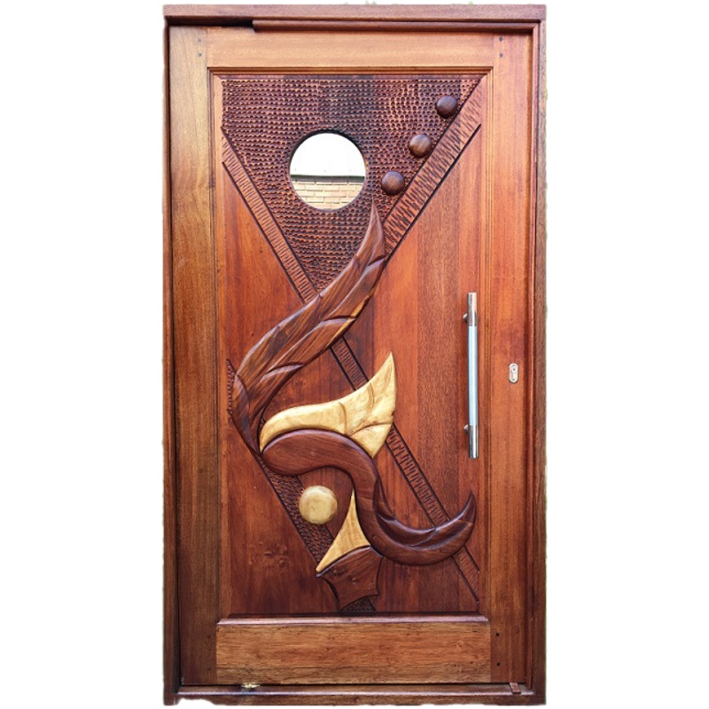 A9 Pre Hung Pivot Door with Porthole & Raised Pattern 1200W X 2120 in Frame complete with factory fitted lock, pivot hinge & handlesKey Features:Pre-hung Pivot Door: Simplify installation with our pre-hung design, ensuring a seamless fit into your space.Premium Saligna Timber: Experience the beauty and durability of Saligna Timber, providing a natural and timeless aesthetic.Glass Pane: The door features a round glass pane.Decorative Raised Sided Design: The door has a 3D design on the outside.Inward Opening: The door opens inwards, optimizing space and allowing for a graceful entry experience.Left & Right Hand Opening Options: Choose the opening direction that best suits your preferences and space configuration.Pre-Oiled at Factory: Enjoy the convenience of a pre-oiled finish, adding an extra layer of protection and highlighting the natural beauty of the timber.Custom Sizes Available: Need a specific size? Contact us at [email protected] for personalized sizing options and pricing.6 Month Manufacturers Guarantee: Rest easy with our 6-month guarantee, reflecting our commitment to product quality and customer satisfaction.