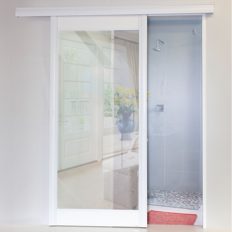 alpha sliding door, barn door, bathroom door, frosted glass sliding door, Interior Doors >> Barn Doors, interior sliding door, modern sliding door, privacy sliding door, sliding door, space-saving door, white frame sliding door