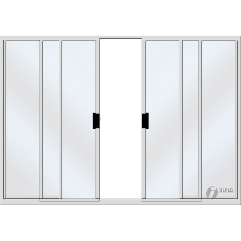 4200W X 2100H 4 Door Aluminium Sliding UnitHigh Quality Sliding Unit2 X Fixed Outer Doors and 2 X Centre Doors SlideFor use in residential projectsGlazed with toughened safety glass, complying to all regulationsWoolpile SealsFor security the lock is only f