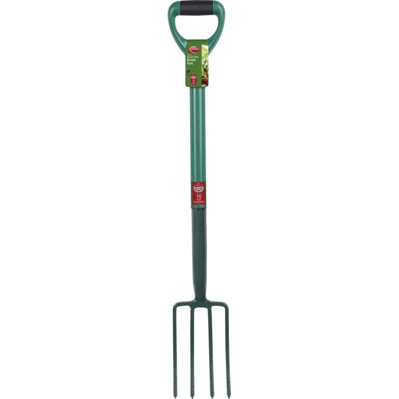 Durable PVC shaft Soft grip bent forward YD handle Hard wearing carbon steel tines Ideal for general cultivation, turning and aerating soil 10 Year Guarantee