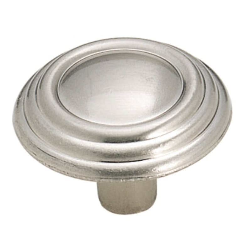 BP1307-G9 Sterling Nickel Round Ringed Cabinet Knob Pull from Amerock's Brass & Sterling Traditions CollectionAdd style to your cabinets and furnitureBrass & Sterling Traditions, Sterling Nickel finishRound Ringed DesignDurable Zinc constructionDiameter: 1