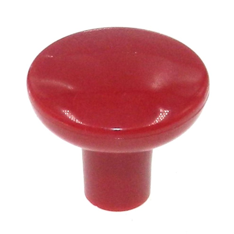 Red 1 1/8" round cabinet knob, model BP8683-PR from Amerock's Elan collection. This product does not come with the manufacturer warranty.Amerock Elan knobRed finish, plastic materialsFor cabinets, drawers and furnitureHigh strength ABS engineered plasticDi