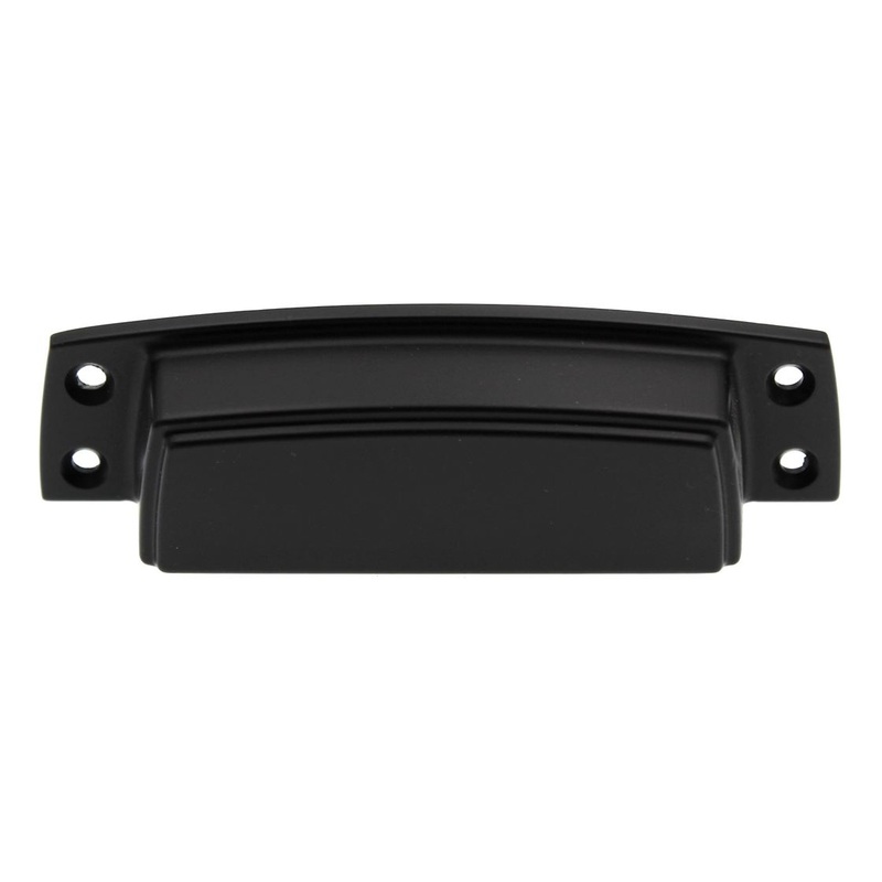 Black Bronze drawer cup pull with 3 1/2 inch screw spacing, model BP55318BBR from Amerock's Highland Ridge collection.Amerock Highland Ridge collection A new refined style of a traditional casual designWell crafted from zinc materials in a Black Bronze fin