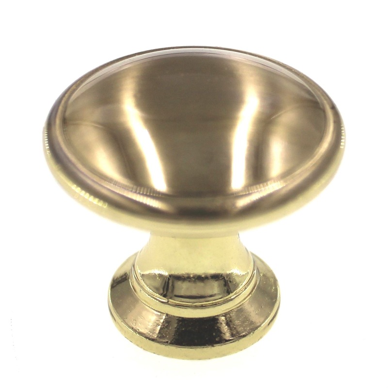 Brushed Brass 1 1/4" round cabinet knob, model BP1466-O74 from Amerock's Hint of Heritage collection. This product does not come with the manufacturer warranty.Amerock Hint of Heritage knobBrushed Brass finish, zinc materialsFor cabinets, drawers and furni