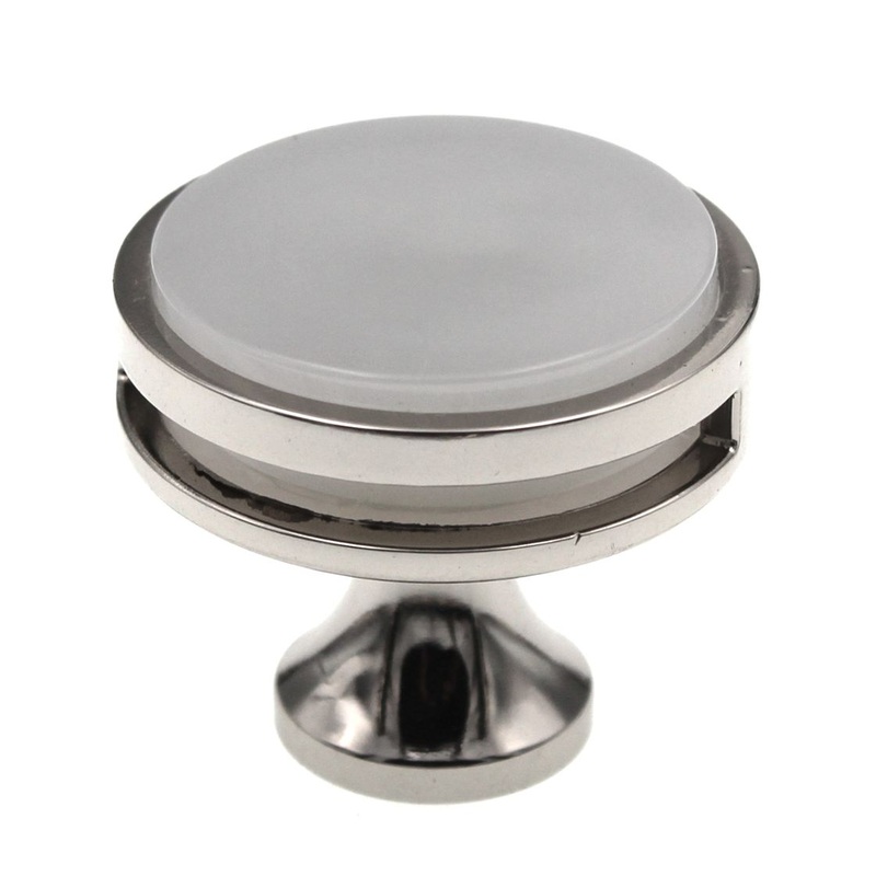 Polished Nickel and Frosted 1 3/8 inch cabinet knob, model BP36608PNFA from Amerock's Oberon collection.Amerock Oberon collection Clean simple design with an alluringly elegant feelPolished Nickel and Frosted finishWell crafted from zinc, acrylic materials