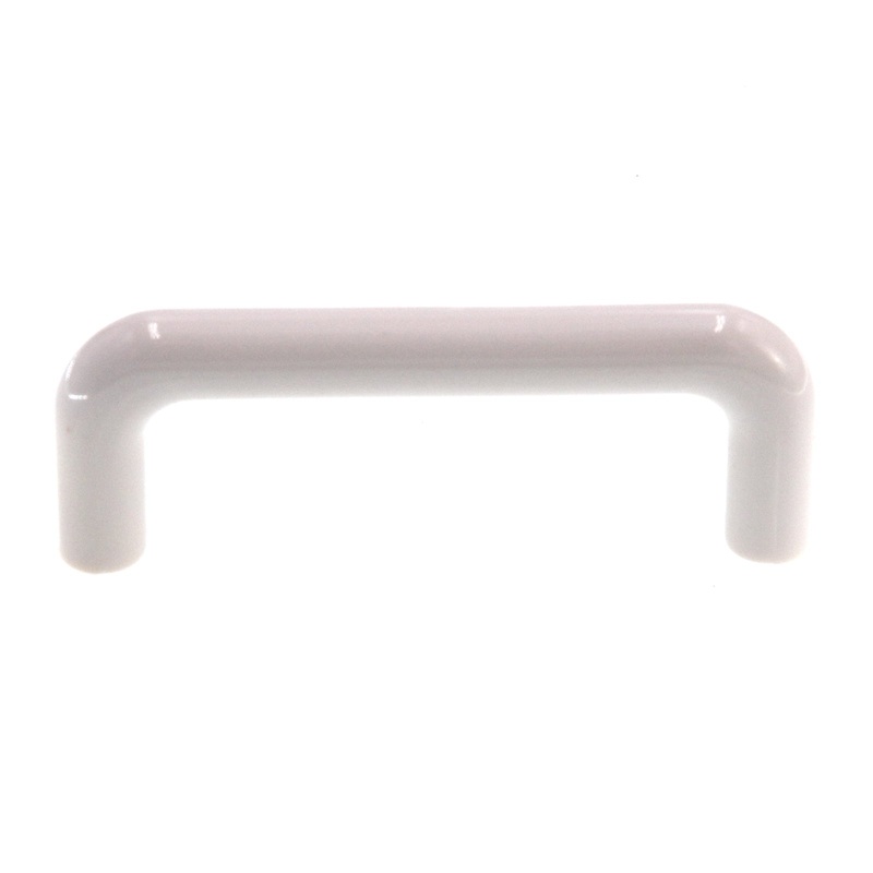 White finished cabinet arch pull handle with 3" hole center screw spacing, model BP5430-54 from Amerock's Plastics collection. This product is new but does not come with the manufacturer warranty.Amerock Plastics collectionPlastic in white finishArch Pull