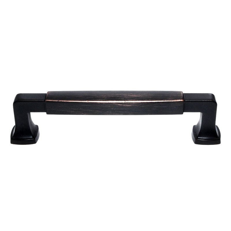 Oil-Rubbed Bronze cabinet arch pull with 5 1/16 inch (128mm) screw spacing, model BP36888ORB from Amerock's Radius collection.Amerock Radius collection Pedestal feet and curved ends give an elevated twist to a classic bar pullWell crafted from zinc materia