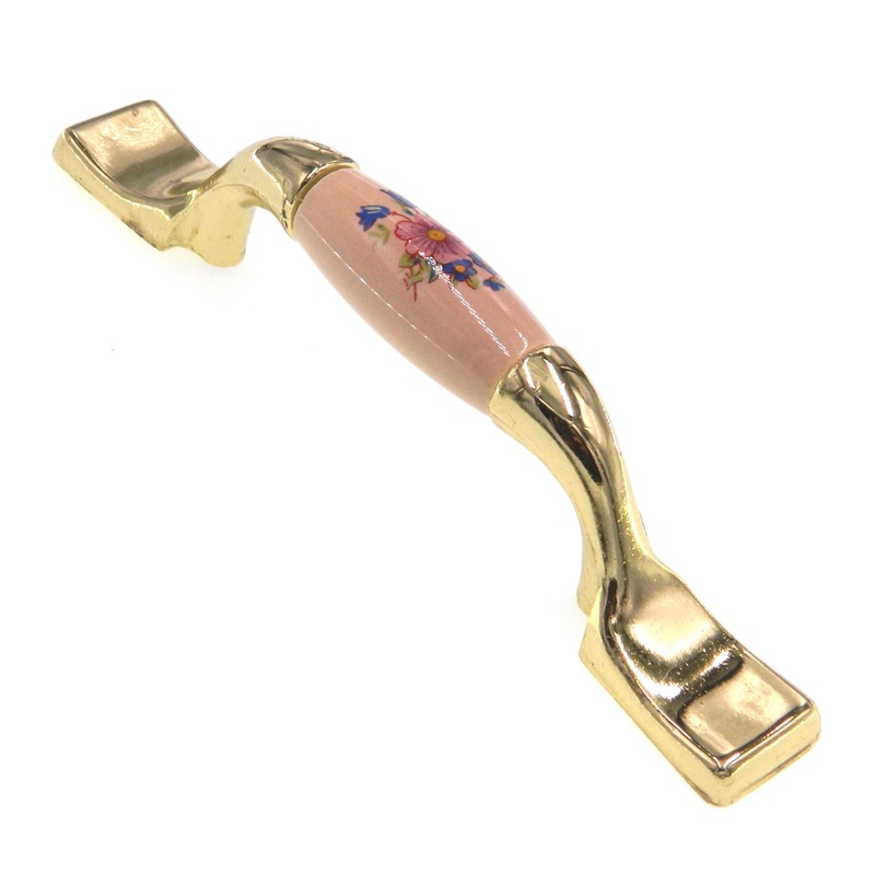 Vintage Royal Family bright brass cabinet arch pull with floral almond center in 3 inch center to center screw spacing, model BP76240-FAL3 from Amerock. New old stock in good condition, does not come with the manufacturer warranty.Amerock Royal Family coll