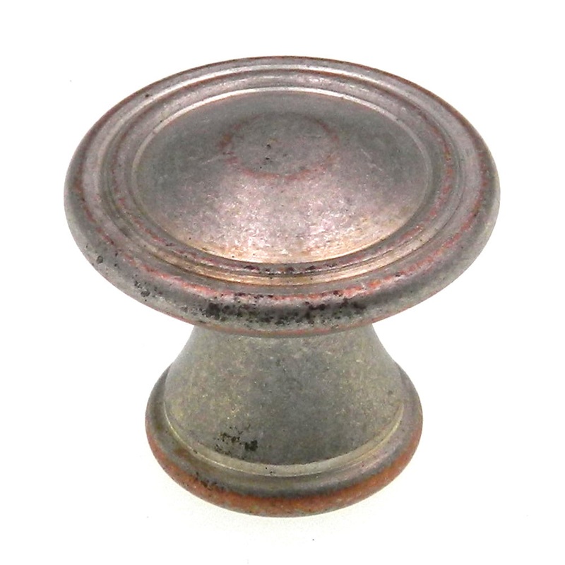 Weathered Nickel Copper 1-1/4" round zinc cabinet knob, model BP24009-WNC from Amerock's Vasari collection. This item is new but 'old stock' and does not come with the manufacturer warranty.Amerock Vasari collectionWeathered Nickel Copper finishDecorative