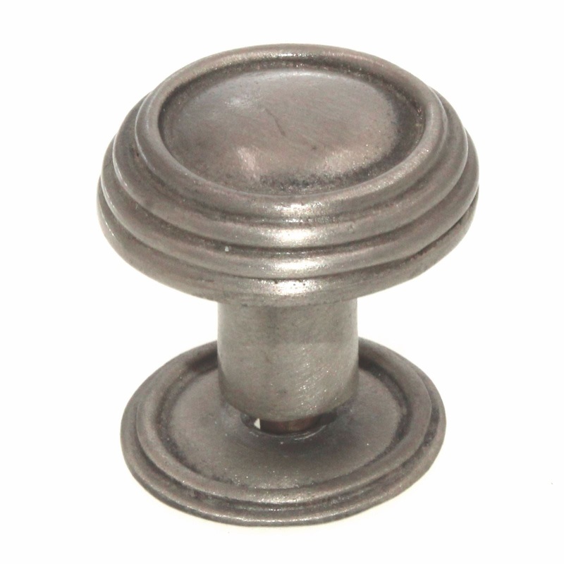 Satin Pewter 1 1/4 inch ringed round cabinet knob, model 1302-20 from Anne at Home's Sonnet collection. This product is from a display board.Anne at Home Hardware Sonnet Large knobSatin Pewter finish, pewter materialsHand crafted from solid lead-free pewte