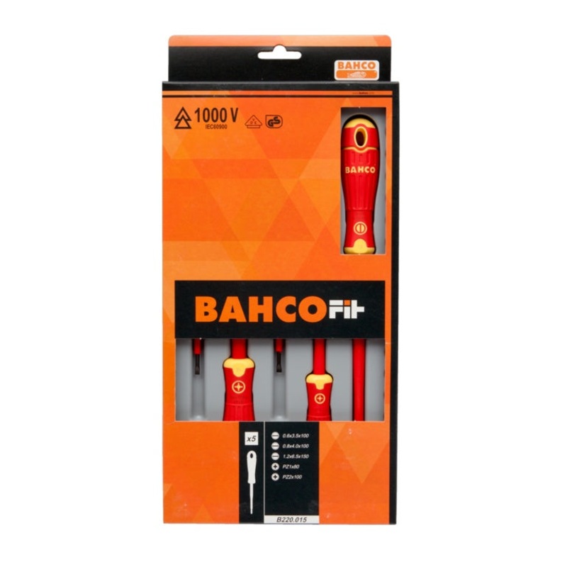 BahcoFit insulated screwdriver set, 5 pcsFor slotted and Pozidriv screws