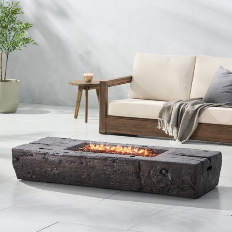 Barnes Lightweight Concrete Outdoor 40,000 BTU Wood Finish Fire Pit (No Tank Holder), BrownCapture a cozy campfire aesthetic with a centerpiece that looks like real wood. With 40,000 BTU and a lightweight concrete build, our gas fire pit not only offers an