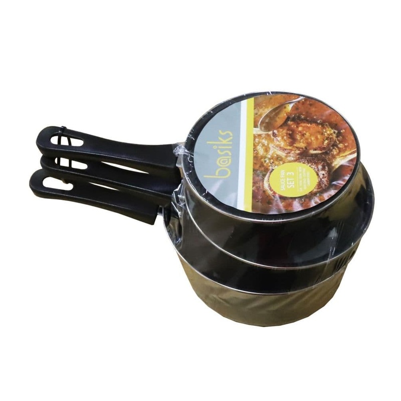 Basiks Carbon Steel Saucepan Set – 3 Piece