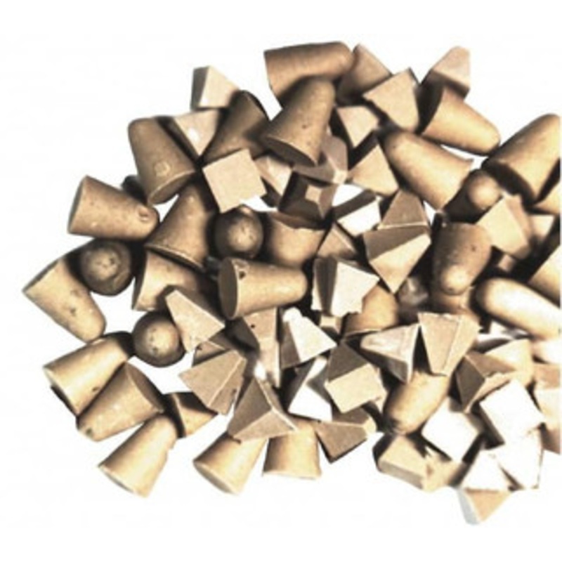 Bel-Air Finishing Supply Plastic Carrier, Zirconia Alumina Abrasive, 1/4, 3/8 Long x 1/4, 3/8 High Cone & Pyramid Shaped Cutting Tumbling Media Angle Edge, Wet Operation CM1000HD-20LB – 09118456