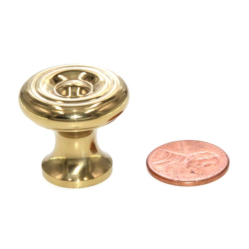 Polished Brass 1 inch ringed round solid brass cabinet knob, model P9152 from Belwith Products's Period Brass collection.Belwith Products Period Brass knobPolished Brass finish, solid brass materialsVintage knob made with quality craftsmanship.Ringed desig