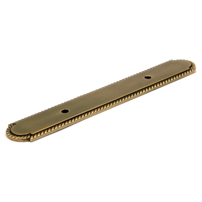 Sherwood Antique Brass 3"cc Solid Brass Cabinet Handle Pull Backplates P109 from Belwith Keeler Hickory Hardware's Annapolis CollectionAnnapolis CollectionSherwood Antique Brass Finish3" Hole CentersDimensions: 6 1/2" x 1" x 1/8"Use to add style or cover m