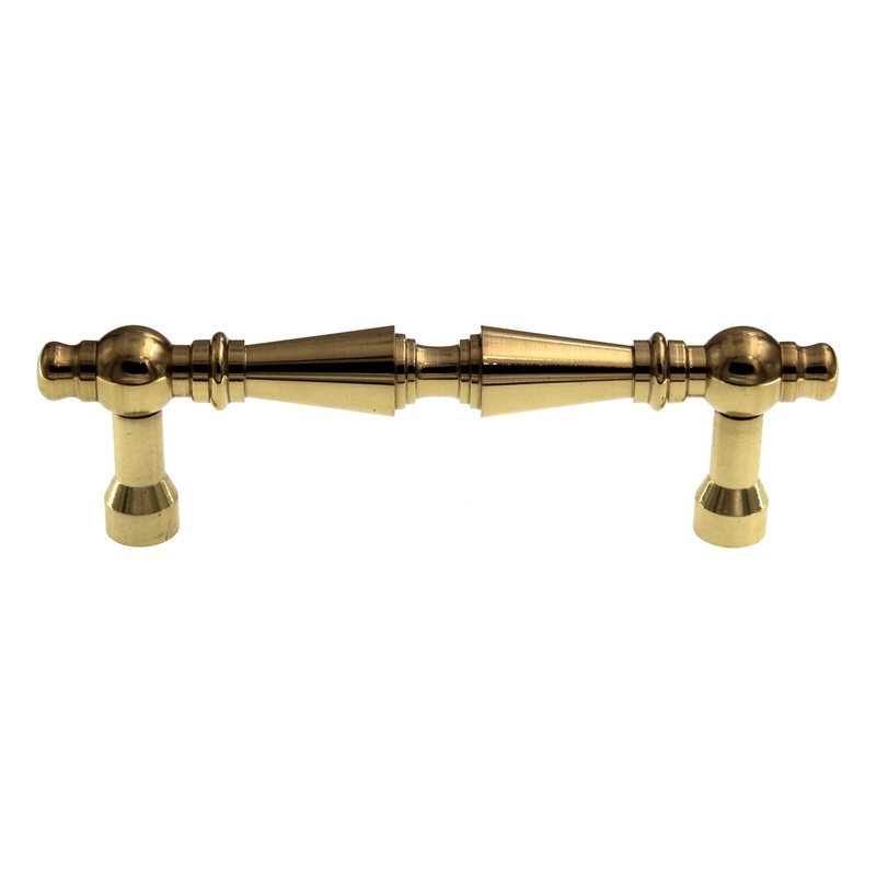 Polished Brass cabinet pull with 3 inch screw spacing, model 9953-303-B from Berenson Plymouth collection.Berenson Plymouth pull, discontinued, limited quantities availablePolished Brass finish, solid brass materialsFor cabinets, drawers and furnitureHole