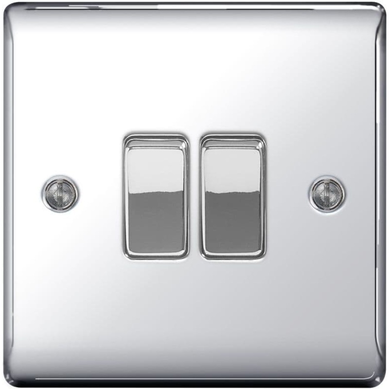 BG Metal Chrome 10ax Plate Switch 2 Way – 2 Gang