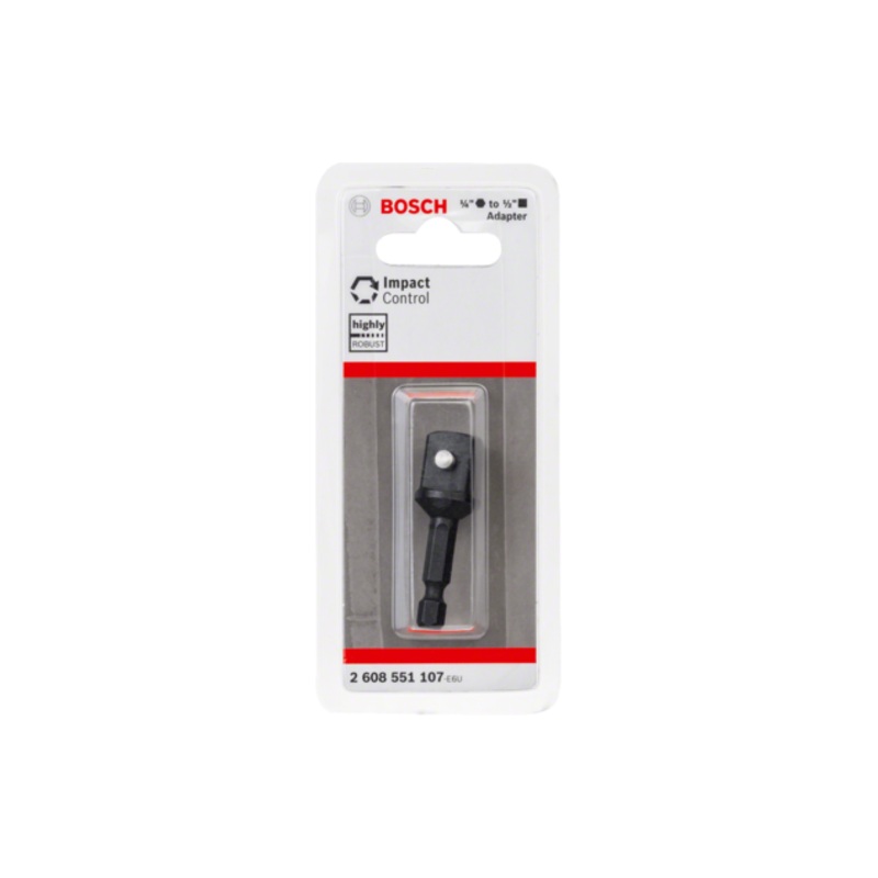 The Impact Control Adapter for Sockets is highly robust, and is specially designed to withstand the high power of impact drivers. Its S2 Modified Steel and optimised heat-treatment process provide the socket with extra endurance for high performance making it extremely sturdy for long-lasting work. The adapter features an external square drive enabling it to hold sockets with an internal square drive, which would normally only fit impact driver. This product is intended for heavy-duty screw-driving applications such as plant installations or heavy industrial work.For Bosch Socket WrenchMADE IN VIETNAM