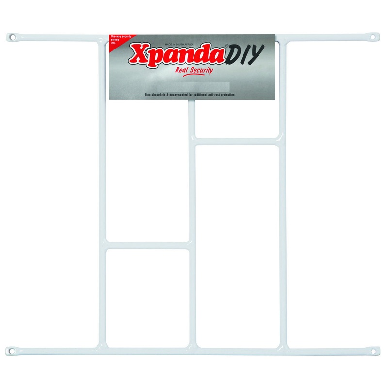 Xpanda Brick Burglar Guard - 530mm x 450mm WhiteBrick shape design suited forWoodenwindow framesCoated with anElectroplate andEpoxy finish to give a high gloss finish as well as make the burglar guardsscratch and rust resistant.Supplied with tamper proof,