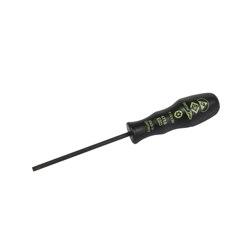 Ergonomic tri-lobe handle design for comfort & effective delivery of torqueFully ESD compliant for safe use on sensitive electronic componentsToughened alloy steel blade for exceptional strength & durabilityBlack anti-peel finish eliminates the risk of dam