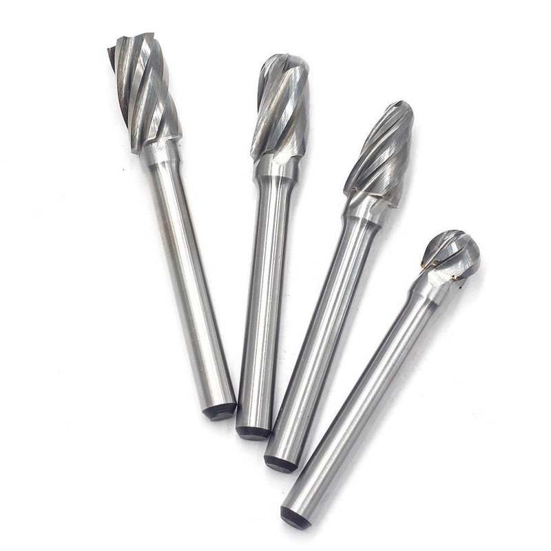 Shop for FindBuyTool Carbide Burrs Set ALUMIN Range 1/4 Shank, 4Pcs. This multipurpose die grinder bits set is designed to cut aluminum, nonferrous metal, and soft plastics. FindBuyTool multifunction grinding burrs set 4Pcs includes rotary burrs of SA-3NF, SC-3NF, SD-3NF, SF-3NF. Technical information Model Head Dia. Head Length Shank Dia. OAL Ideal HRC Cut Head Material Shank Material SA-3NF 3/8 3/4 1/4 2-1/2 54< Alu Cut Tungsten Carbide Alloy Steel SC-3NF 3/8 3/4 1/4 2-1/2 54< Alu Cut Tungsten Carbide Alloy Steel SD-3NF 3/8 3/8 1/4 2-1/8 54< Alu Cut Tungsten Carbide Alloy Steel SF-3NF 3/8 3/4 1/4 2-1/2 54< Alu Cut Tungsten Carbide Alloy Steel Applications Aluminum Aluminum Alloy Nonferrous Metal Soft Plastics Machine Die Grinders Pneumatic Rotary Tools High Speed Engravers SHIPPING DIAMETER UNIT Box Package Plastic Set Box Net Weight 101.3 Package Size 142 x 98 x 41mm