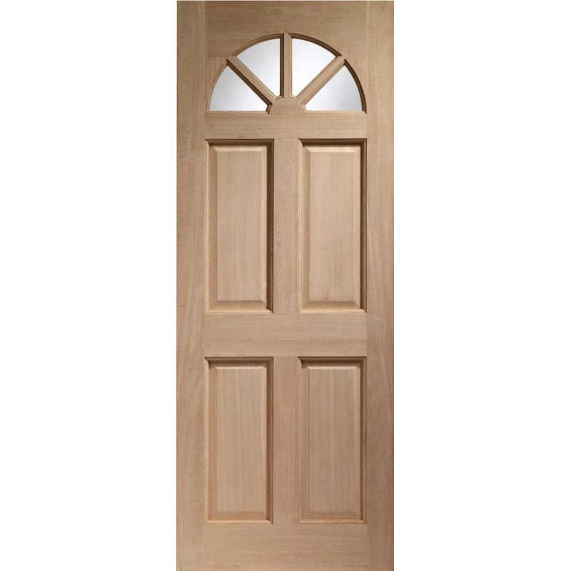 The Carolina meranti Doorhas a popular fanlight design that allows natural light while maintaing privacy & security.FeaturesArched glass 4 pane topDoor is supplied without glassFourSolid Meranti Raised & Fielded PanelsSupplied rawThis door is available in