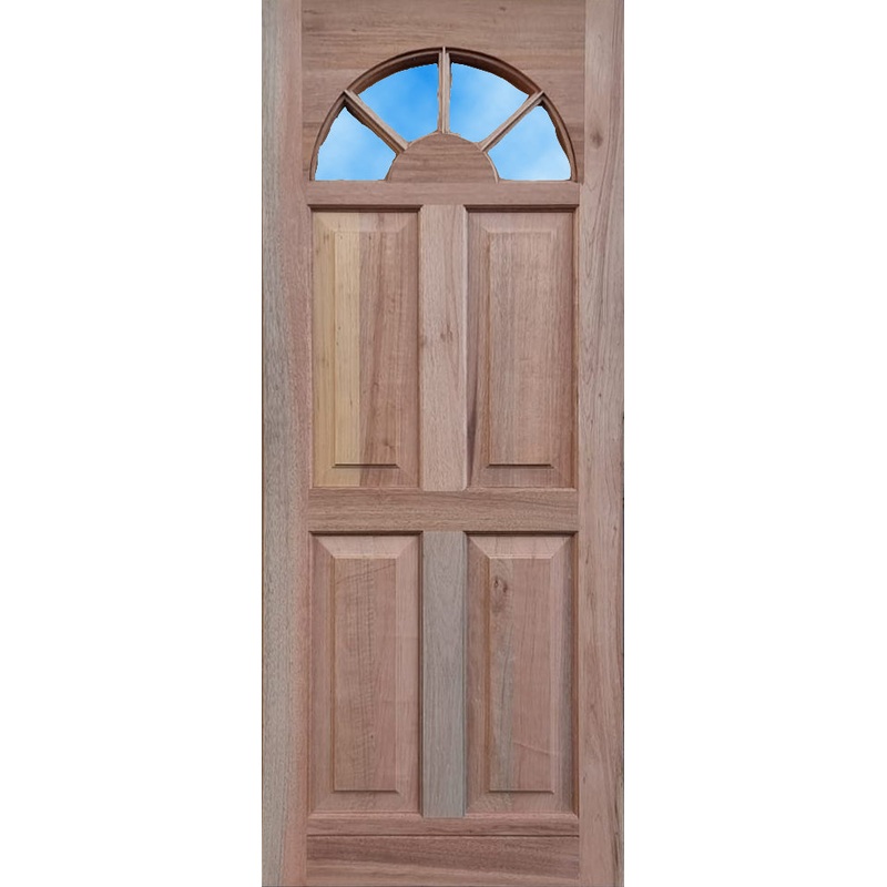 The Carolina meranti Door has a popular fanlight design that allows natural light while maintaing privacy & security.FeaturesFourSolid Raised & Fielded Panels42mm thick PanelsArched glass 4 pane top - no glass suppliedSolid Kiln Dried Meranti TimberDoor Si