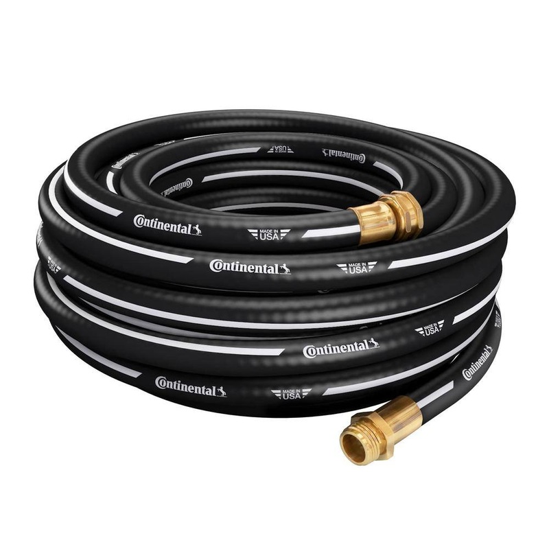 Continental 20243770 3/4 in. x 50 ft. Coupled Contractor Water HoseContinental ContiTech 3/4 in. 50ft. Heavy duty watering hose for the construction site, farm and household. This hose has 3/4 in. id for more water volume for those tough applications. This professional design contractor watering hose is made from Real Rubber and will give you all the characteristics of a true rubber product, abrasion resistance, all weather and longer life compared to PVC based hoses.Abrasion resistant for all type of applications and weather, rain, sun and snowOzone resistance built in to prevent cracking and fading of hose coverMade in USA Contractor hoseCrushed resistance brass fittingsDimensionsFitting Diameter (in.)0.375Hose Diameter (in.)3/4Hose Length (ft.)50 ftProduct Depth (in.)4.7 inProduct Height (in.)15.25 inProduct Width (in.)15.25 inDetailsBurst Pressure (psi)200Duty RatingContractorHose MaterialRubberHose TypeStandard gardenPack Size1Product Weight (lb.)16.11 lb