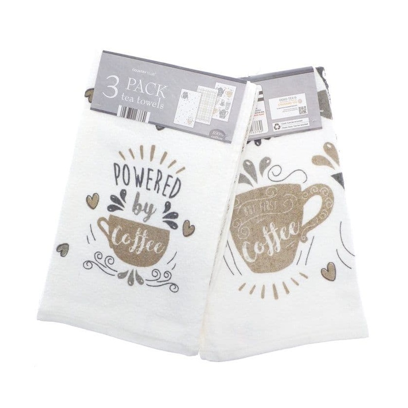 R71907330Country Club Velour Tea Towel Coffee - 3 Pack
