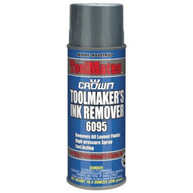 Crown Toolmakers Ink Remover 6095, 10.5 oz. Aerosol Can Layout Fluid Remover Removes old inks quickly and efficiently without leaving a residue. Clings, does not drip. May also be used as paint stripper. 10.5 oz can Model #6095 ASIN B009I2LC3K