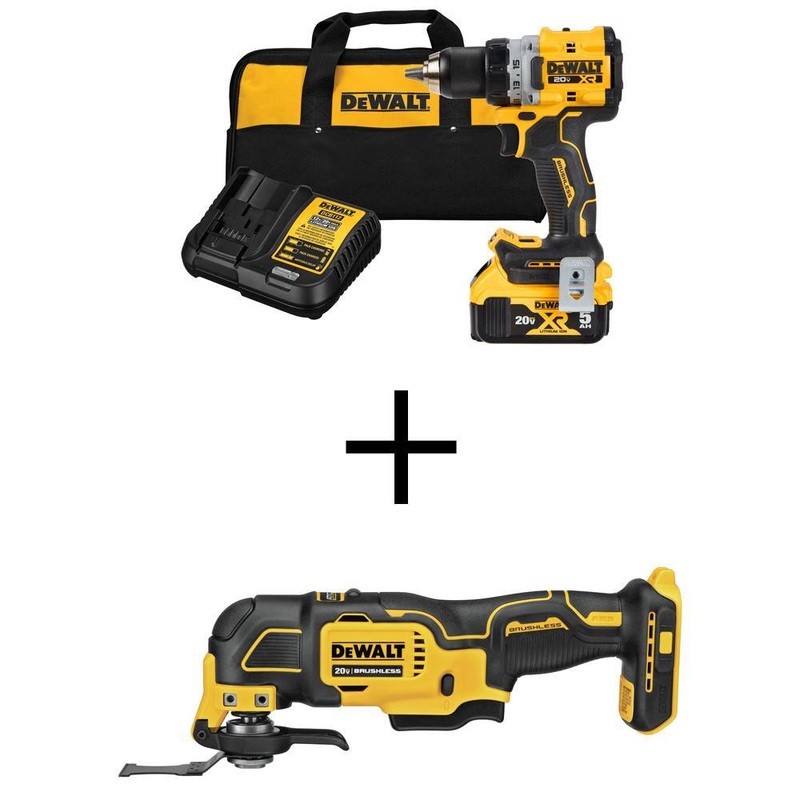 DEWALT DCD800P1WDCS354 20V MAX XR Lithium-Ion Cordless Compact 1/2 in. Drill/Driver Kit with ATOMIC Cordless Brushless Oscillating Multi-Tool | Bigbigmart.com