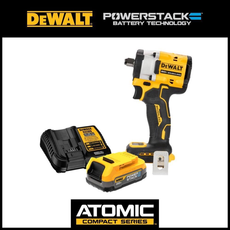 DEWALT DCF921BWP034C 20V Cordless 1/2 in. Impact Wrench and 20V MAX POWERSTACK Compact Battery Starter KitThe ATOMIC 20-Volt Maximum 1/2 in. Cordless Impact Wrench was designed easily to handle various fastening projects. Get up to 300 ft./lbs. of fastening torque and 450 ft./lbs. of breakaway torque with this compact power tool that offers easy maneuverability without sacrificing power. Choose between 4 speed settings while the Precision Wrench (TM) control feature and Timber Screw mode allow for reliable high-level performance, operability and versatility. Dark work areas are no problem with this Cordless Impact Wrench, which comes with an LED work light for visibility in dimly lit spaces. Battery not included. Introducing THE NEXT DIMENSION IN POWER with the 20-Volt Maximum DEWALT POWERSTACK Compact Battery and Charger Kit DCBP034C.Adaptable fastening range: up to 300 ft./lbs. of fastening torque and 450 ft./lbs. of breakaway torqueEnhanced user control in a variety of applications with 4 speed settingsPrevents Over Tightening and fastener run-off with Precision Wrench(TM) controlBrighten dark workspaces with onboard LED and brightness controlQuickly change bits: hog ring anvil for rapid, secure socket changesOptimized speed in wood with timber screw modeBuilt for long life: GFN housing provides resistance from damage caused by some oils and solventsDCBP034C 50% more power in a 25% more compact batteryDCBP034C designed to resist wear-and-tear: durable, over molded base provides impact resistanceDCBP034C long-lasting: battery provides 2X lifetimeDCBP034C avoid unplanned work stoppages: LED fuel gauge displays state-of-chargeDCBP034C 20-Volt maximum system compatibility: battery works with all DEWALT 20-Volt maximum tools and chargersDimensionsDrive Size (in.)1/2 in.Product Depth (in.)8.125 inProduct Height (in.)6.25 inProduct Width (in.)3 in