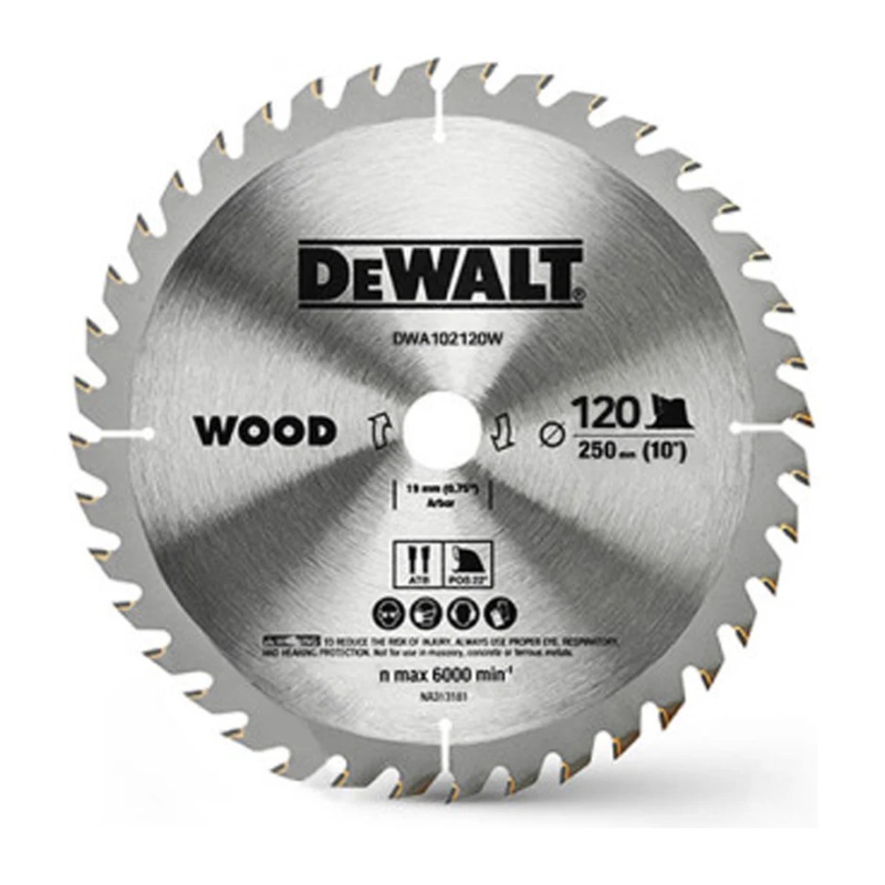 Dewalt DWA102120W Circular Saw Blade 10" x 120T (Wood)THIN KERFCIRCULAR TABLE SAW BLADE250X25.4MM120TFOR WOOD