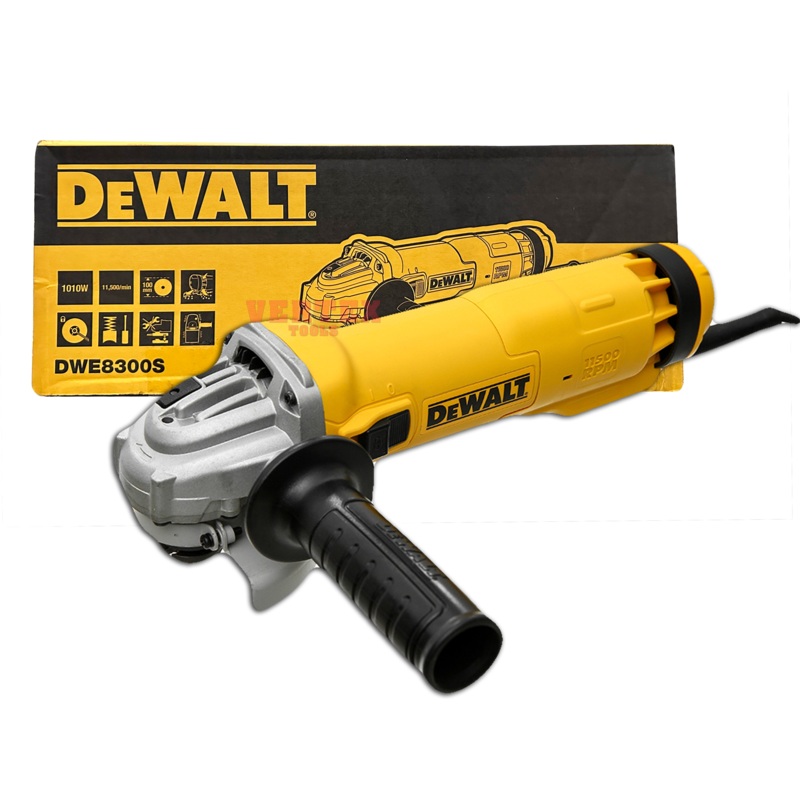 Dewalt DWE8300S Angle Grinder 4" 1010WSpecifications:Power Input: 1,010WWheel Diameter: 100mm (4")No Load Speed: 11,500rpmWheel Thickness (max): 6.0mmSpindleDiameter:M10Spindle Length: 18.5mmSwitch Style: Slide3Years Limited Warranty