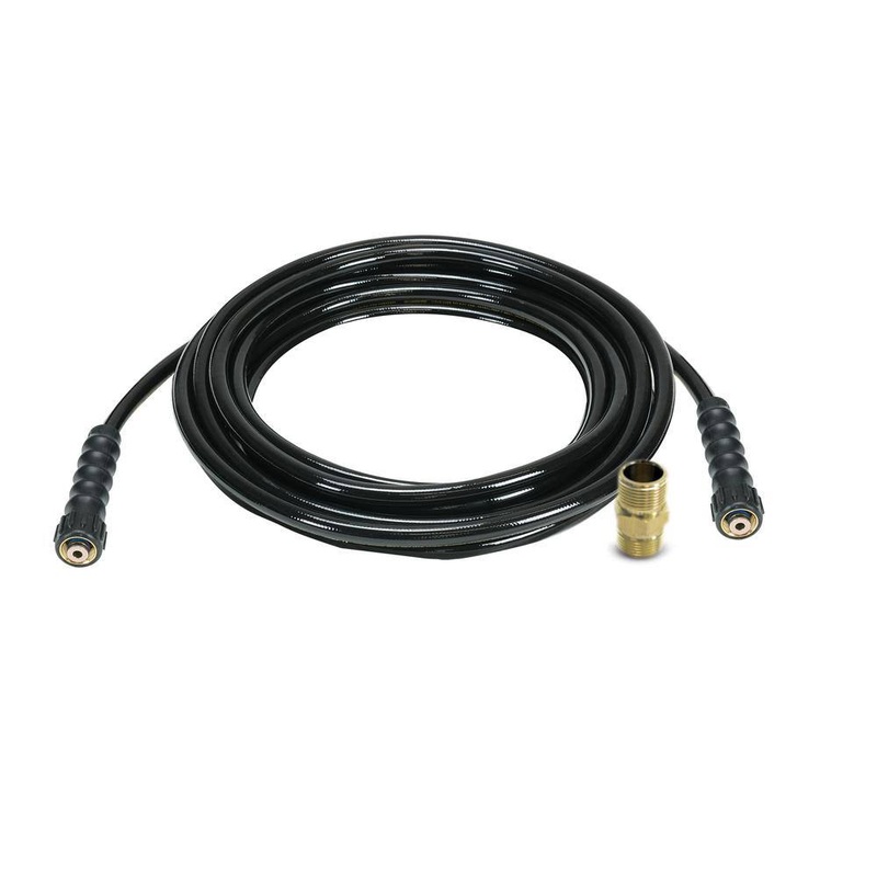 DEWALT DXPA40PH 5/16 in. x 40 ft Replacement/Extension Hose for Cold Water 3700 PSI Pressure Washers, Includes M22 AdapterDEWALT hose technology is designed to be highly flexible and kink resistant. Our hose has a polyurethane outer jacket that is non-marring and abrasion-resistant for improved durability; the 4-inch bend protectors on each end of the hose help extend the life of the hose. This is a cold water hose that is equipped with industry-standard M22 threaded connections with a dual o-ring design to fit most gas and electric pressure washers up to 3700 PSI.Designed to fit most gas pressure washersPolyester and steel-braided inner constructionPolyurethane outer construction is non-marring and abrasion resistantCold water use onlyRated up to 3700 psiM22 Socket and M22 connectionM22 adapter included90 Day Accessory WarrantyImages shown may vary from the actual unitDimensionsHose fitting size (in.)0.3125 inInterior Hose Diameter (in.)5/16 inProduct Length (ft.)40 ftDetailsFeaturesCold waterFits BrandsCompatible with Multiple BrandsFits ModelsVariousHose MaterialPolyurethaneMaximum Pressure (PSI)3700 psi