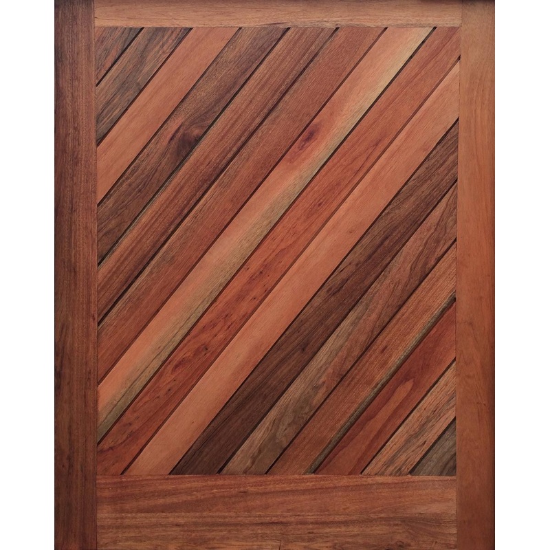 Solid Meranti Diagonal Slatted Pivot Entrance Door 1200W X 2032HFeaturesMade from solid Meranti42mm X 140mm thick slatsDoor is supplied raw / untreated.This door is available in custom sizes - email [email protected] for pricingexterior door, Pivot En