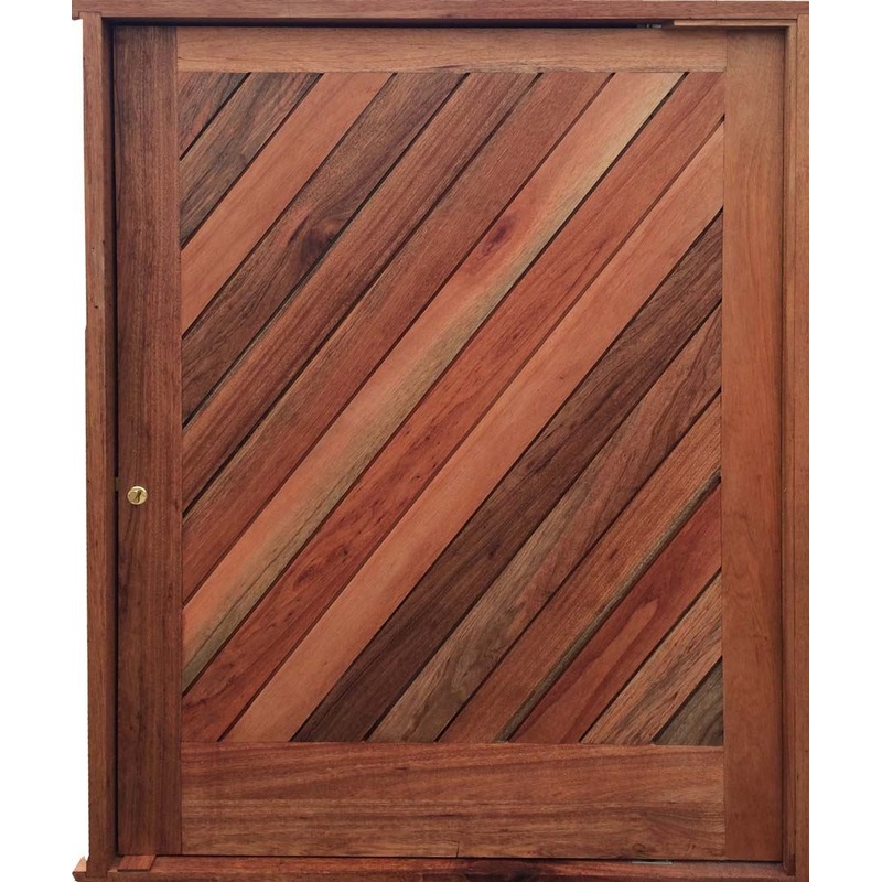 1200W X 2032HSolid Meranti Diagonal Slatted Doorpre hung in the frameFeaturesMade from solid Meranti42mm X 140mm thick slatsPre-Hung in the frameSupplied with lockDoor is supplied raw / untreatedThis door is available in custom sizes.exterior door, Pivot E