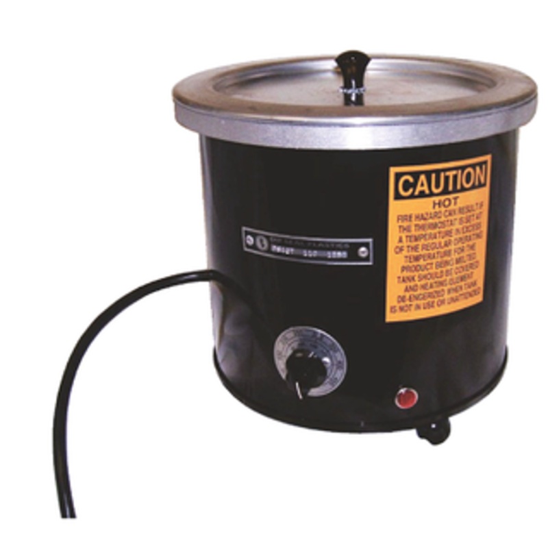 - These melting pots offer thermostatic controls to pre-set temperatures. The tanks are available in stainless steel or cast aluminum varieties.